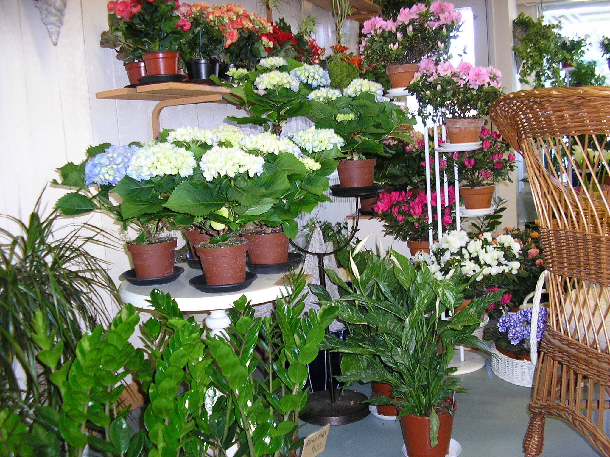 Tarjoamme viherkasveja, asetelmia ja ruukkukukkia/-kasveja läpi vuoden!